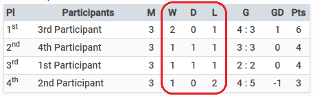 • Suppress Num Matches: If this box is activated the number of matches for each team will be hidden.